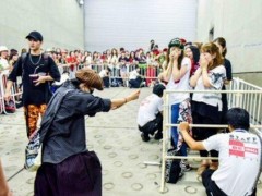 GD被释出的影片里,粉丝在电扶梯旁边目送他离开,边喊著「love u bye bye!」接著该位女生粉丝使出大绝招,不断对著他喊:「恩嘛~恩嘛~恩嘛。」最后GD招架不住,笑到弯下腰,随著乾脆蹲在电扶梯里躲起来,反应融化大批歌迷。