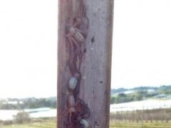 澳洲这片土地上的动物,总是不断刷新着人们的认识。近日有游客到维多利亚省南部雅拉谷旅游时,惊见一条木桩上爬满猎人蛛,在Reddit上PO出照片后,立刻引发网友热议。